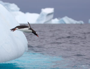 Gentoo Penguins Jumping off an Iceberg in Antarctic Waters